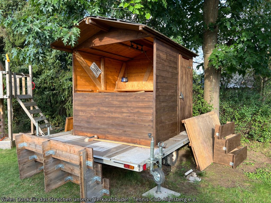 Unsere Verkaufsbude hat einen neuen Anstrich bekommen und erstrahlt in neuem Glanz, bereit für die nächsten Einsätze! Vielen Dank an die Helfer Anita, Annika und Werner!