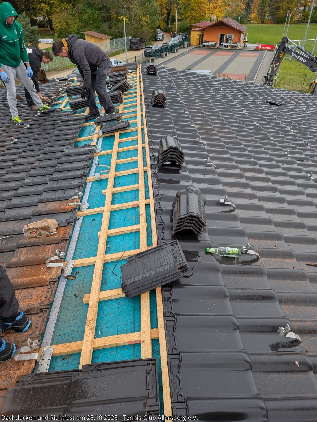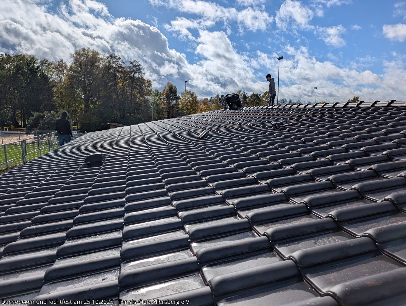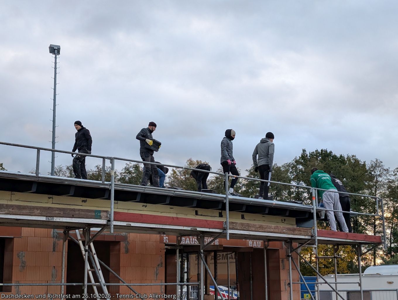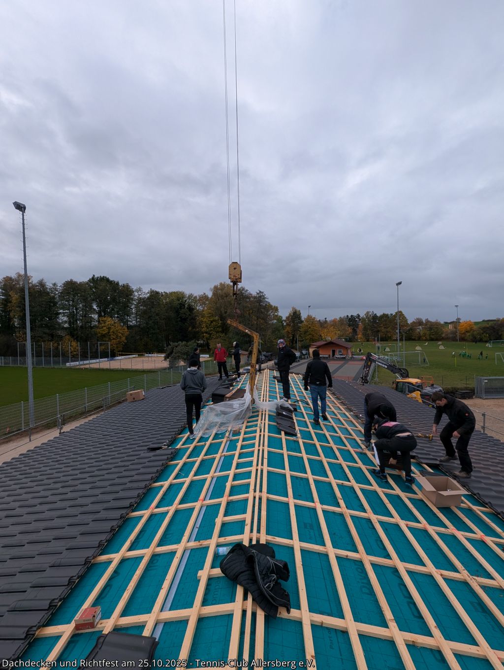 Am Samstag den 25.10.2025 fanden sich um 7:30 Uhr zahlreiche Helfer aus unseren Herrenmannschaften ein, um gemeinsam mit Peter und Georg von der Zimmerei Ramsauer das Dach unseres Tennisheims zu decken. Punktgenau konnten die Arbeiten abgeschlossen werden, sodass anschließend um 14:00 Uhr unser Richtfest abgehalten werden konnte. Standesgemäß wurde von Peter der Richtspruch vorgetragen, begleitet von drei zerschellenden Gläsern. Im Anschluss fand der Nachmittag bei Speis und Trank einen gemütlichen Ausklang. Vielen Dank an alle Helfer beim Dachdecken, an alle die das Richtfest zu einer tollen Veranstaltung gemacht haben und vor allem Peter und Georg Ramsauer für ihre Unterstützung!