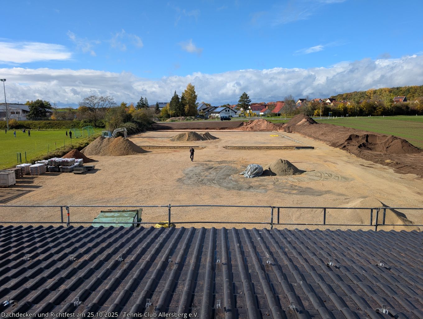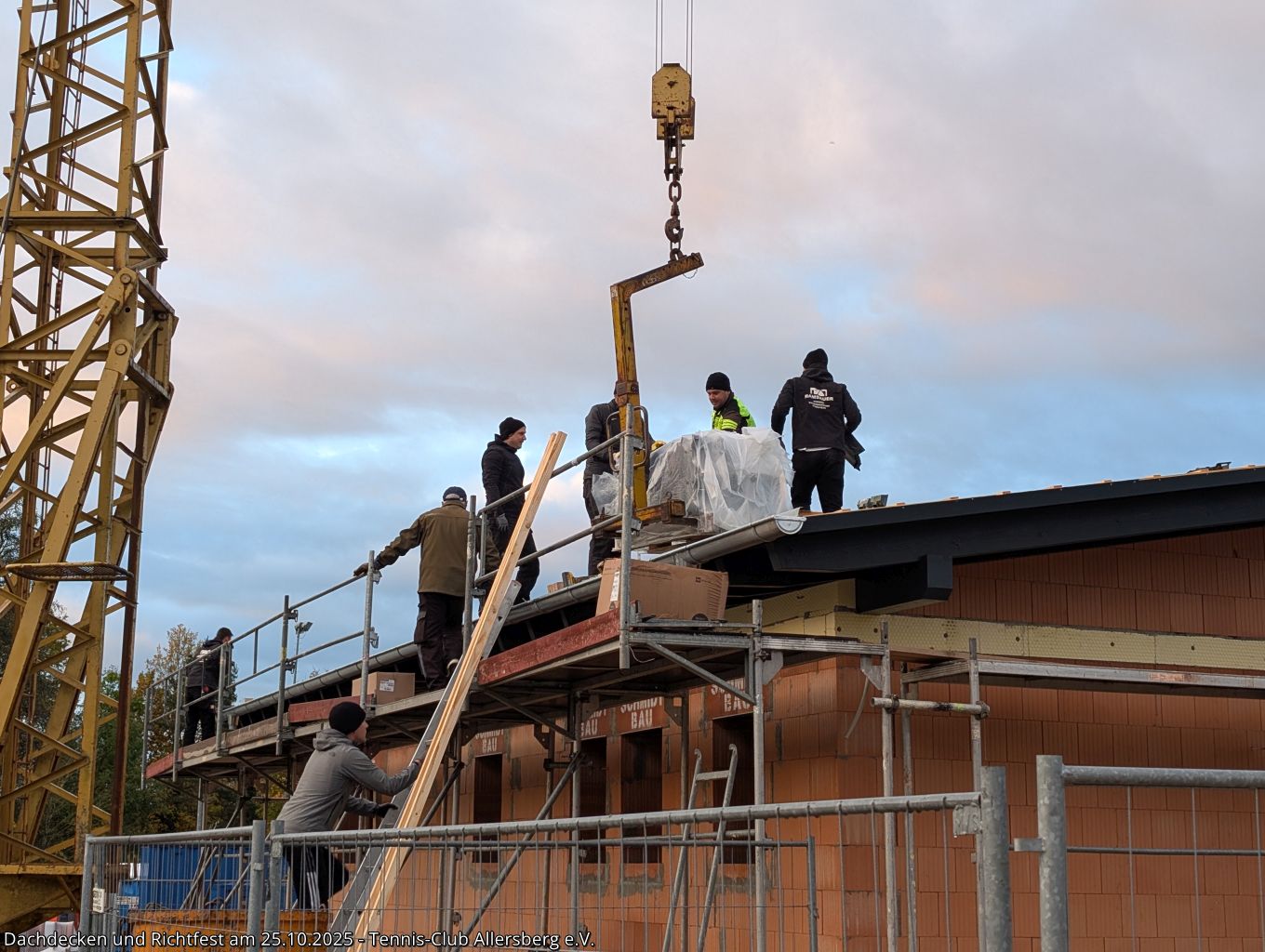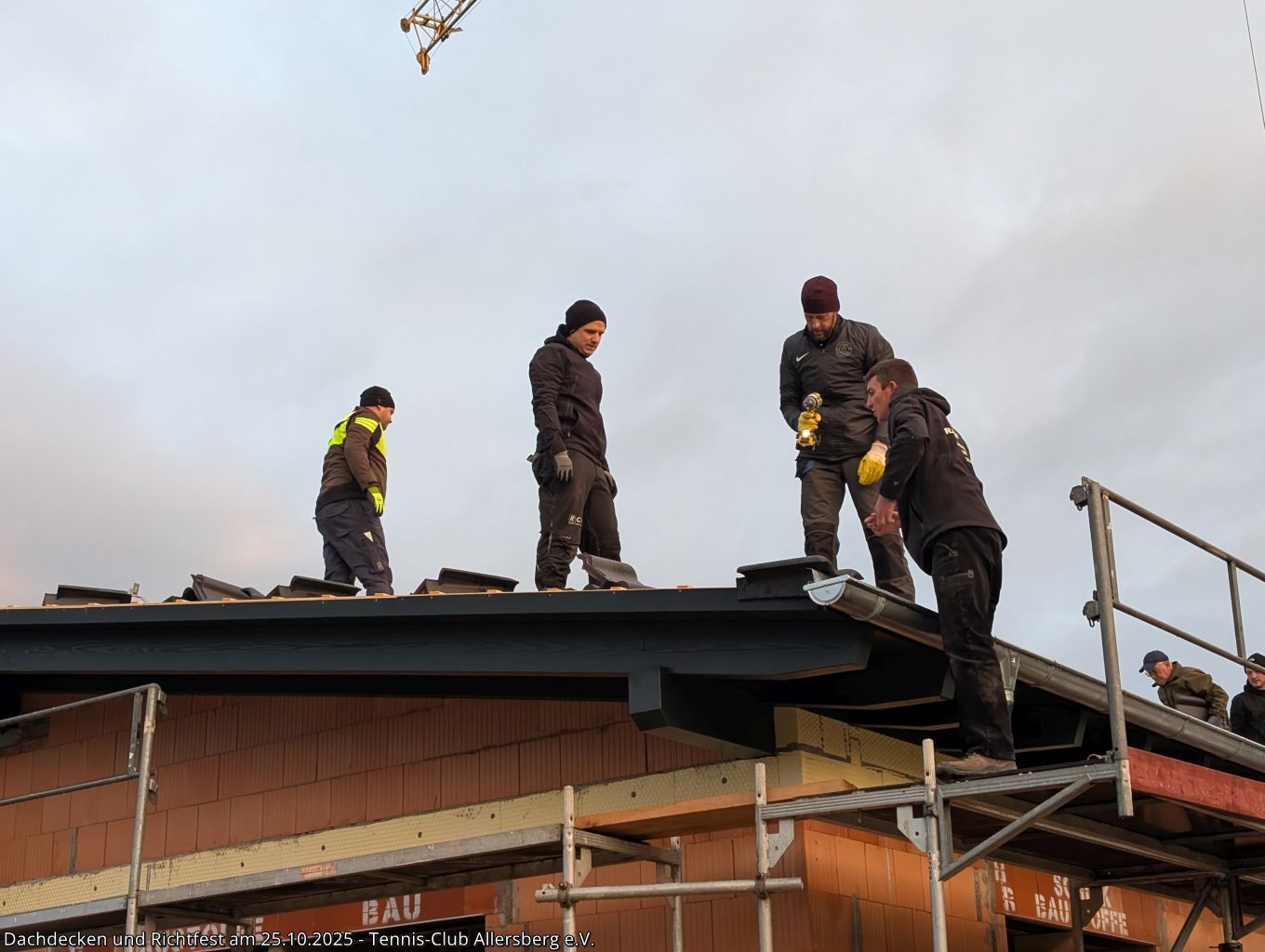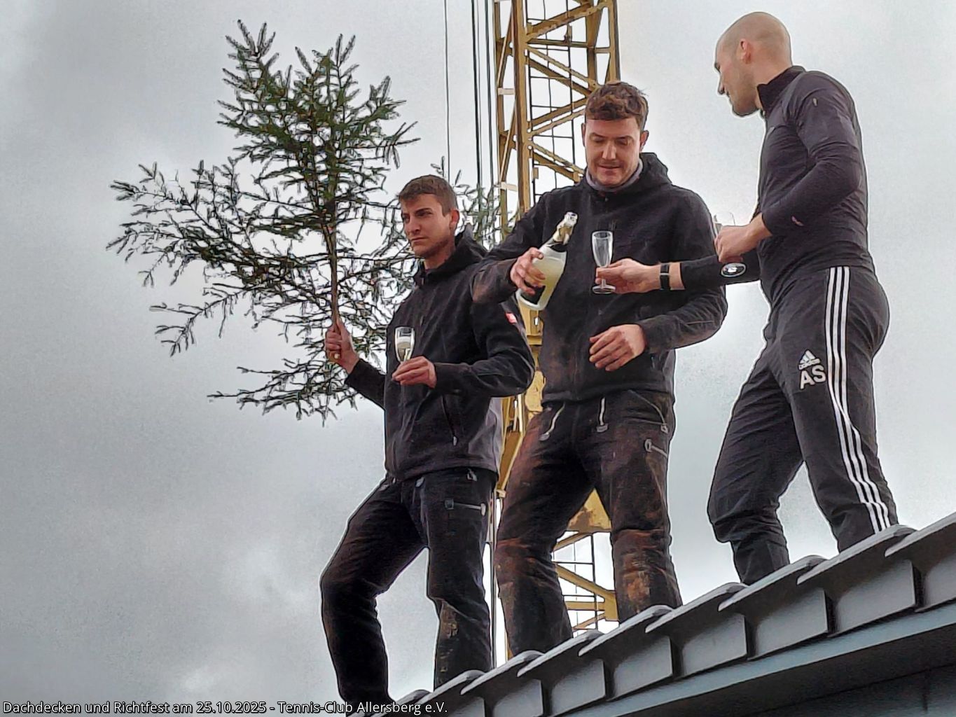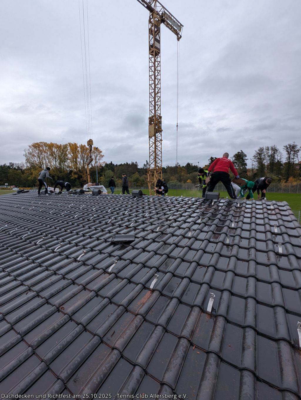 Am Samstag den 25.10.2025 fanden sich um 7:30 Uhr zahlreiche Helfer aus unseren Herrenmannschaften ein, um gemeinsam mit Peter und Georg von der Zimmerei Ramsauer das Dach unseres Tennisheims zu decken. Punktgenau konnten die Arbeiten abgeschlossen werden, sodass anschließend um 14:00 Uhr unser Richtfest abgehalten werden konnte. Standesgemäß wurde von Peter der Richtspruch vorgetragen, begleitet von drei zerschellenden Gläsern. Im Anschluss fand der Nachmittag bei Speis und Trank einen gemütlichen Ausklang. Vielen Dank an alle Helfer beim Dachdecken, an alle die das Richtfest zu einer tollen Veranstaltung gemacht haben und vor allem Peter und Georg Ramsauer für ihre Unterstützung!