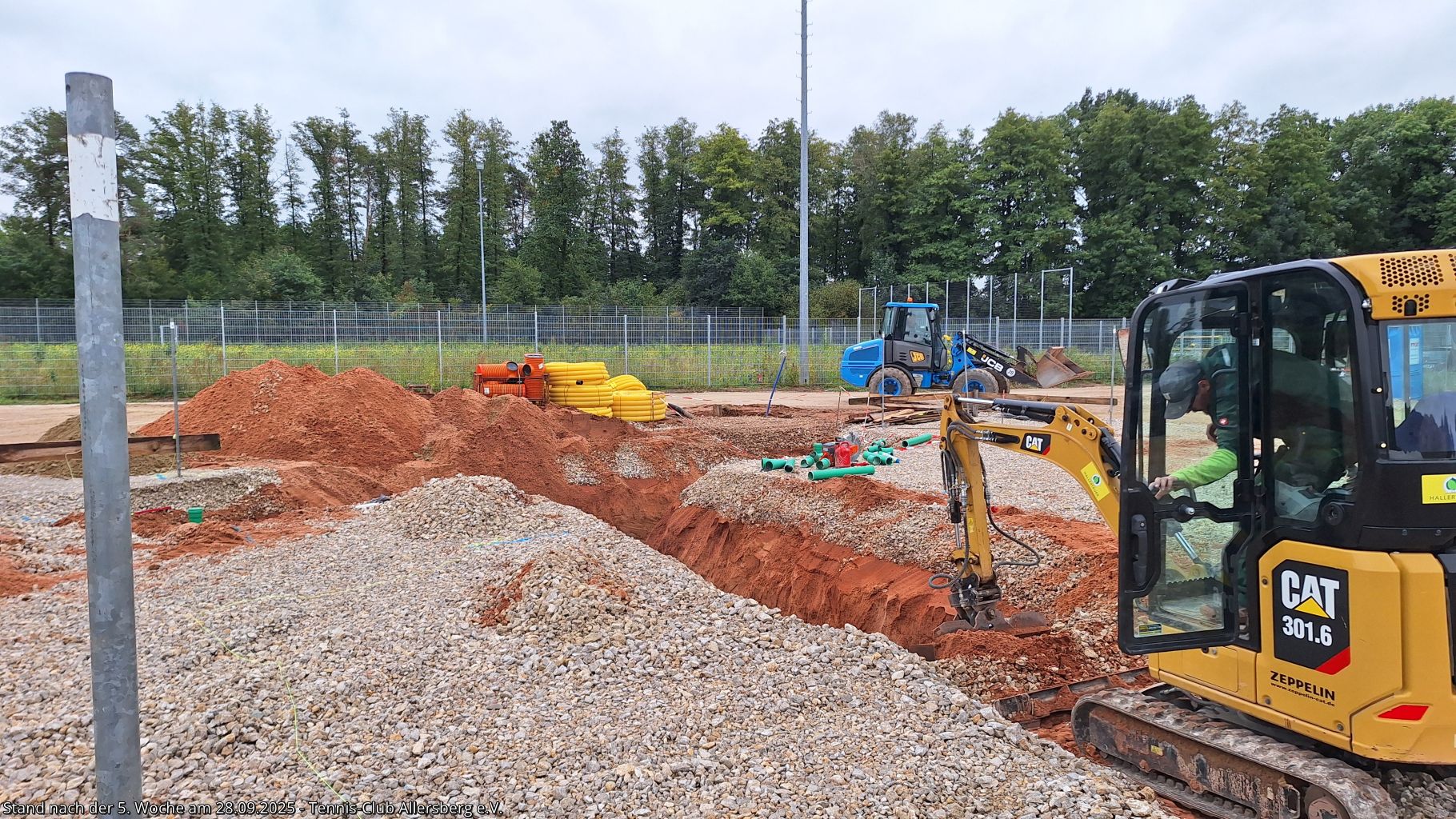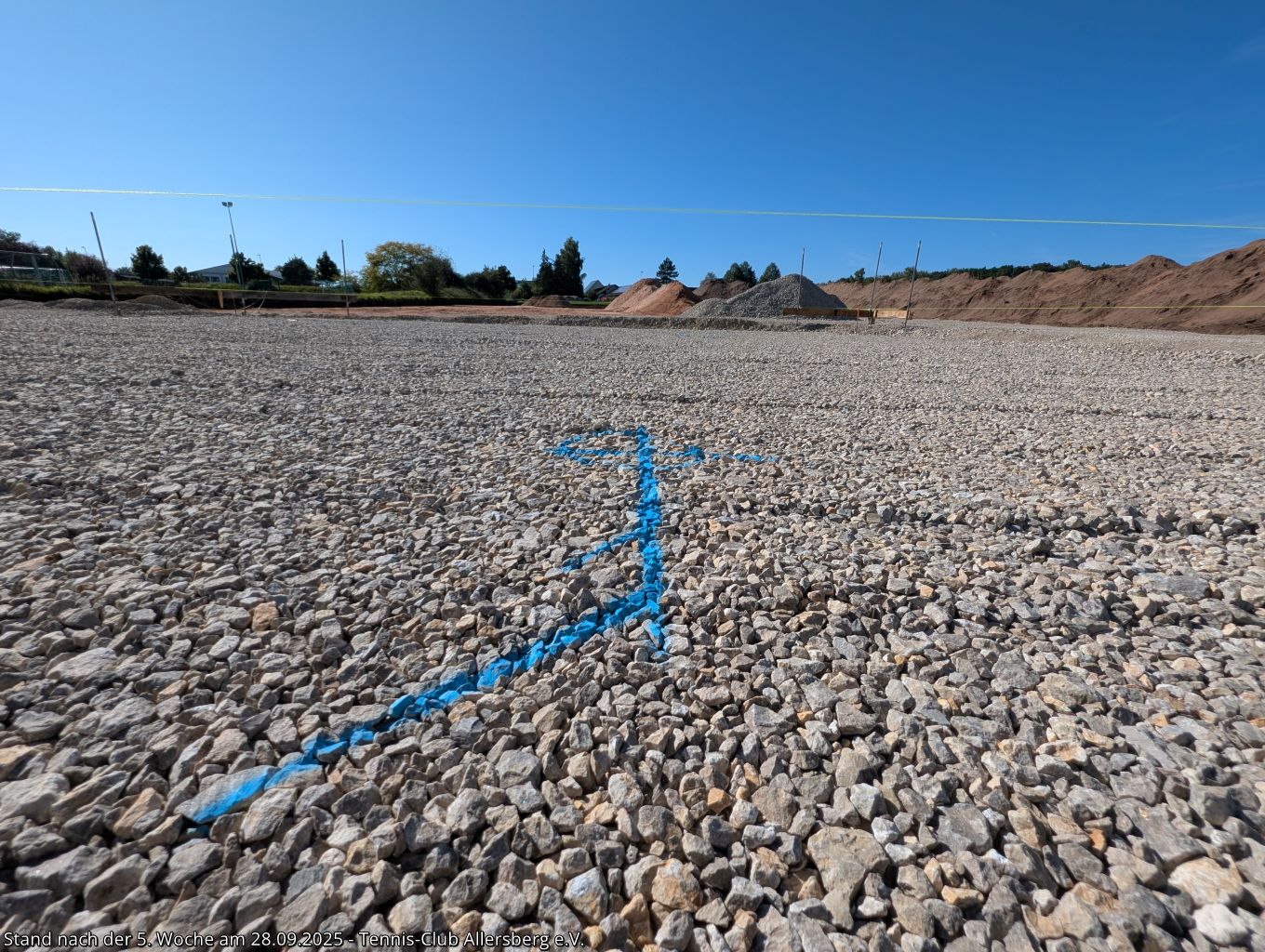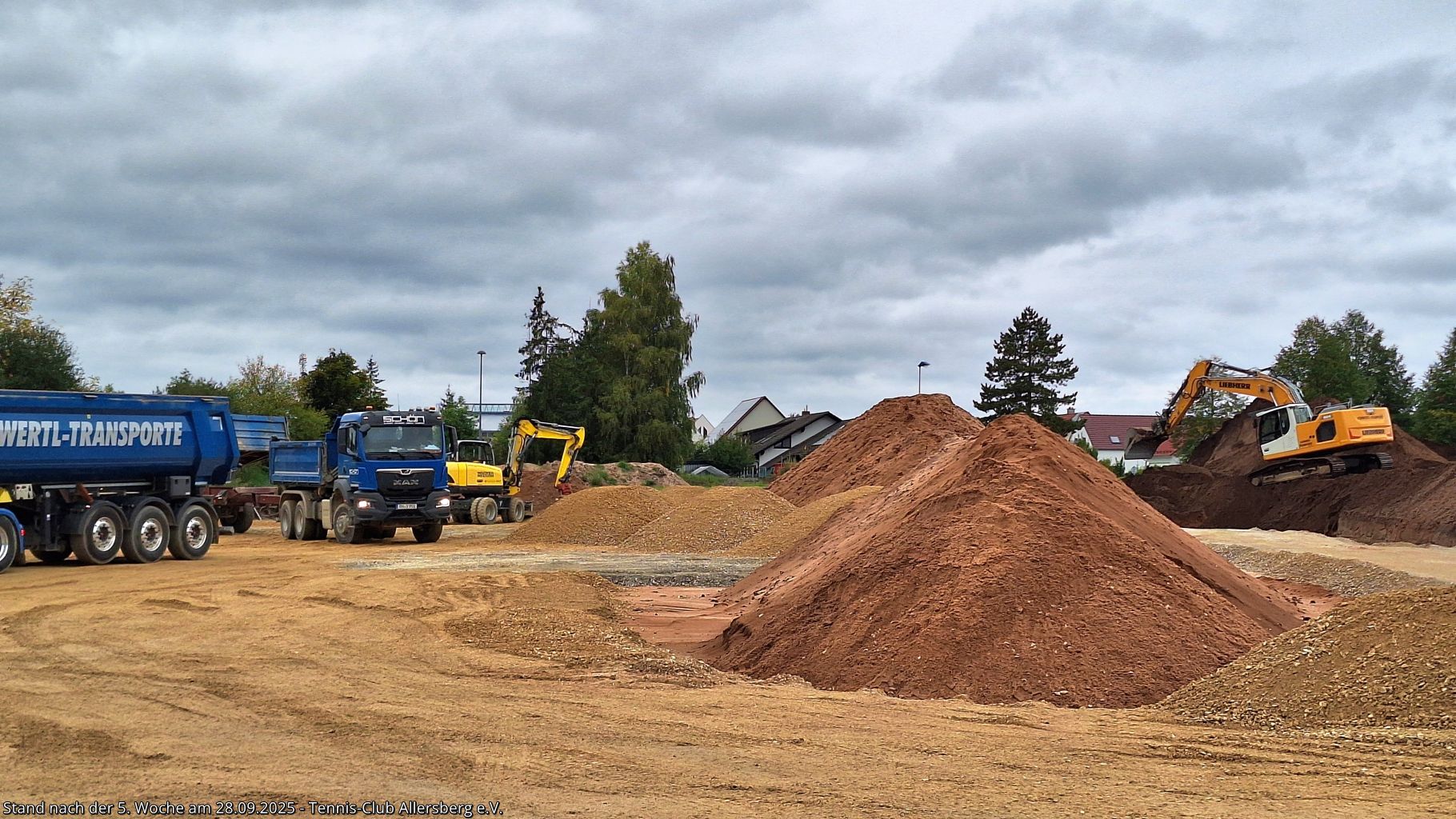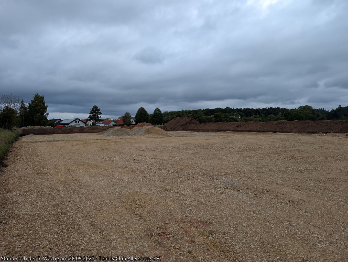 Seit unserem Spatenstich ist einiges passiert, ein Teil des überschüssigen Oberbodens wurde abtransportiert, der Unterbau der Plätze wurde vorbereitet, der Kanalanschluss für das Vereinsheim wurde erstellt, der Kran aufgestellt, sowie die Schalung für die Bodenplatte vorbereitet. Damit steht dem Gießen der Bodenplatte nichts mehr im Wege, auch das Mauern der Außenmauern wird im Laufe der folgenden Woche starten, ehe es auf den Sportplätzen weiter geht.