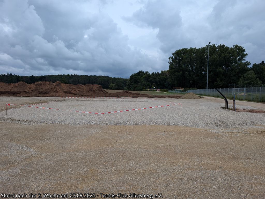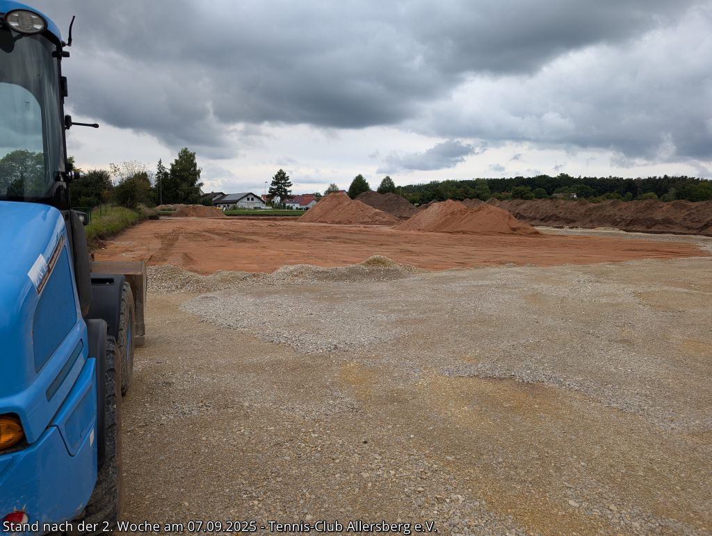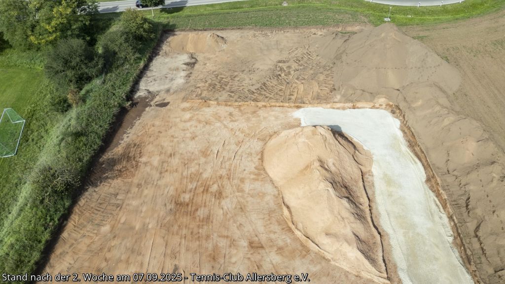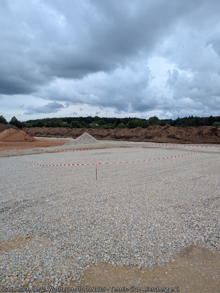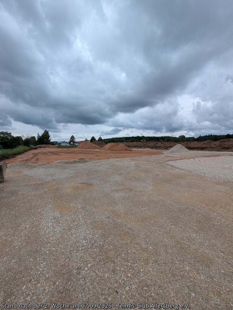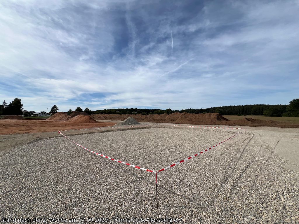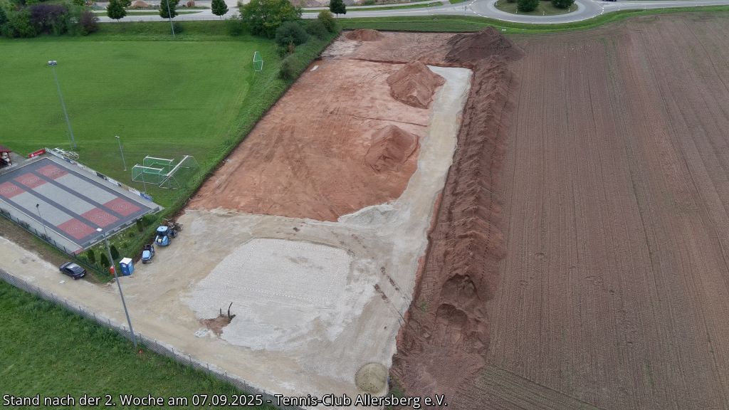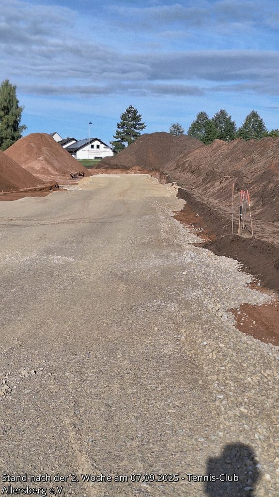 Der Oberboden ist abgeschoben und die Plätze, sowie das Schotterfundament für die Bodenplatte unseres Vereinsheims sind schon gut erkennbar.