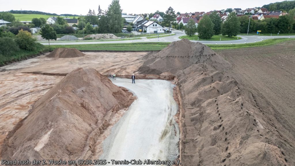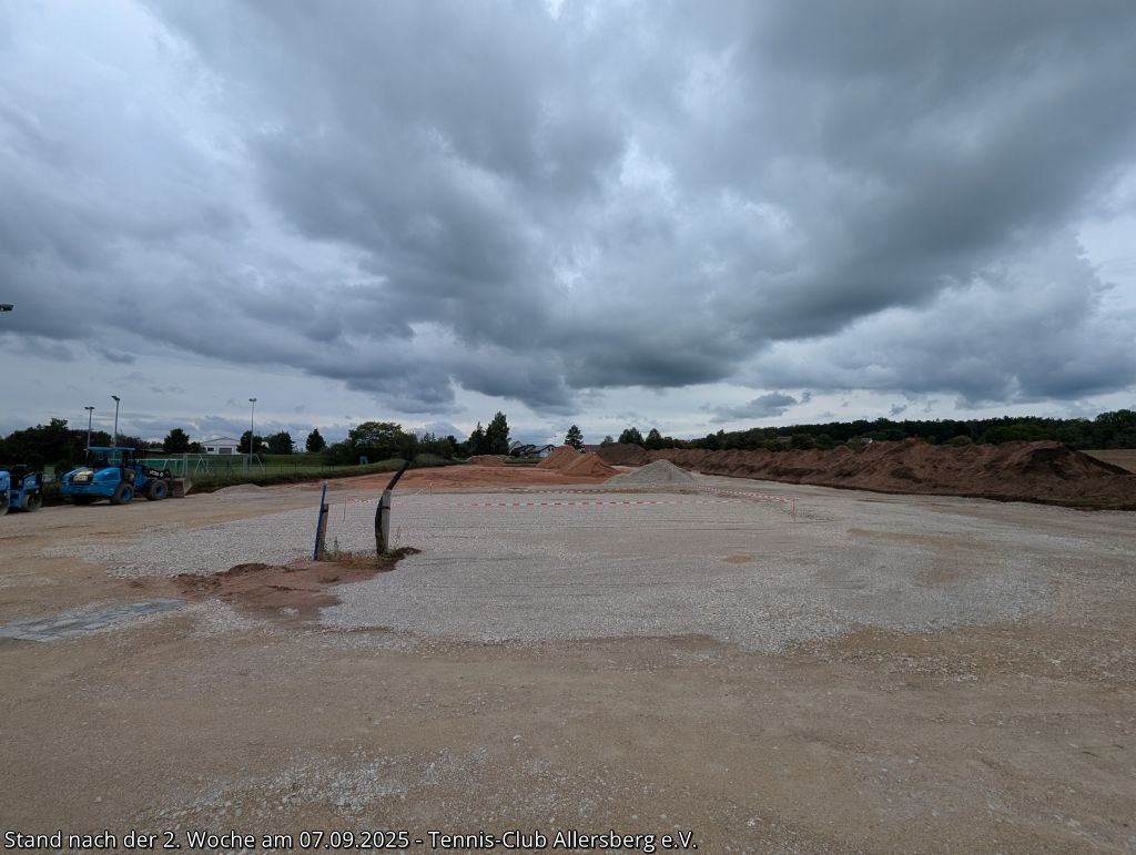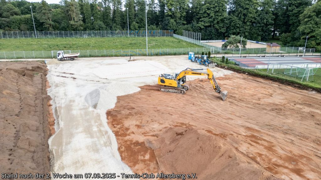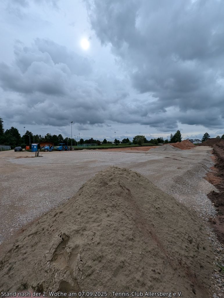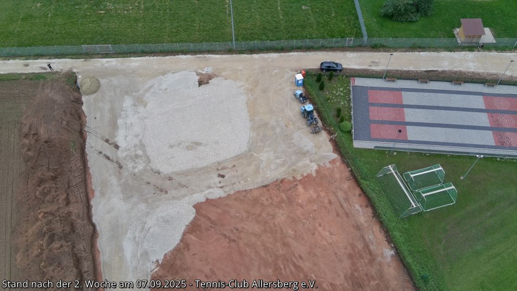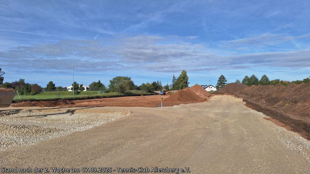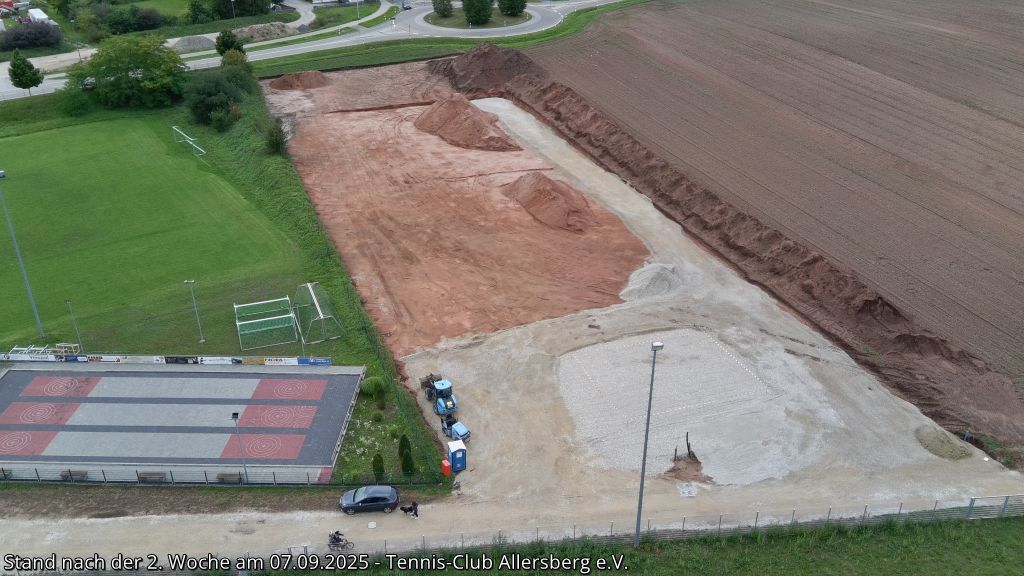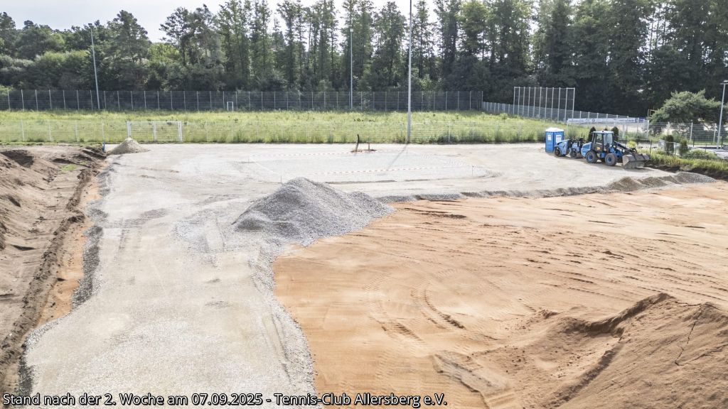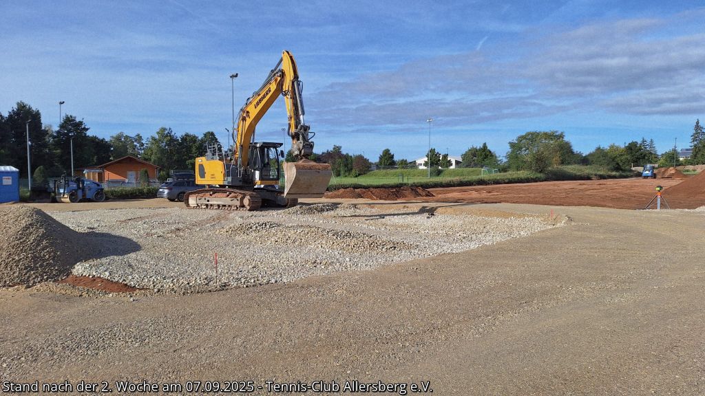 Der Oberboden ist abgeschoben und die Plätze, sowie das Schotterfundament für die Bodenplatte unseres Vereinsheims sind schon gut erkennbar.