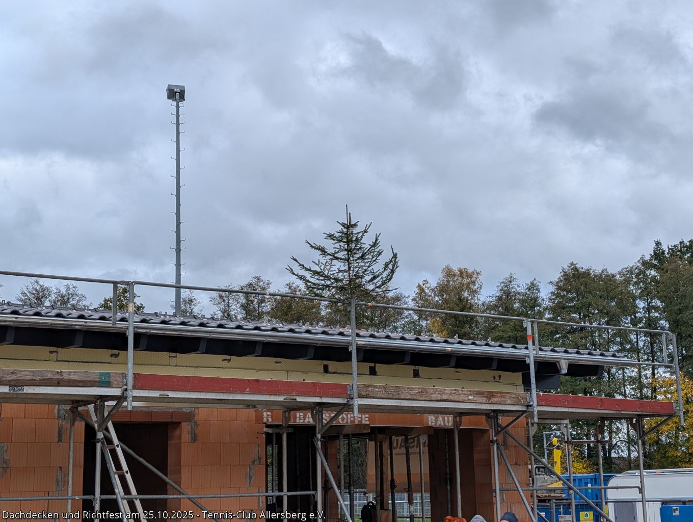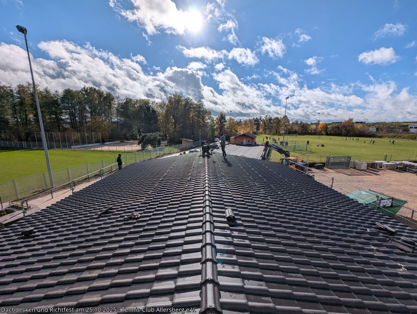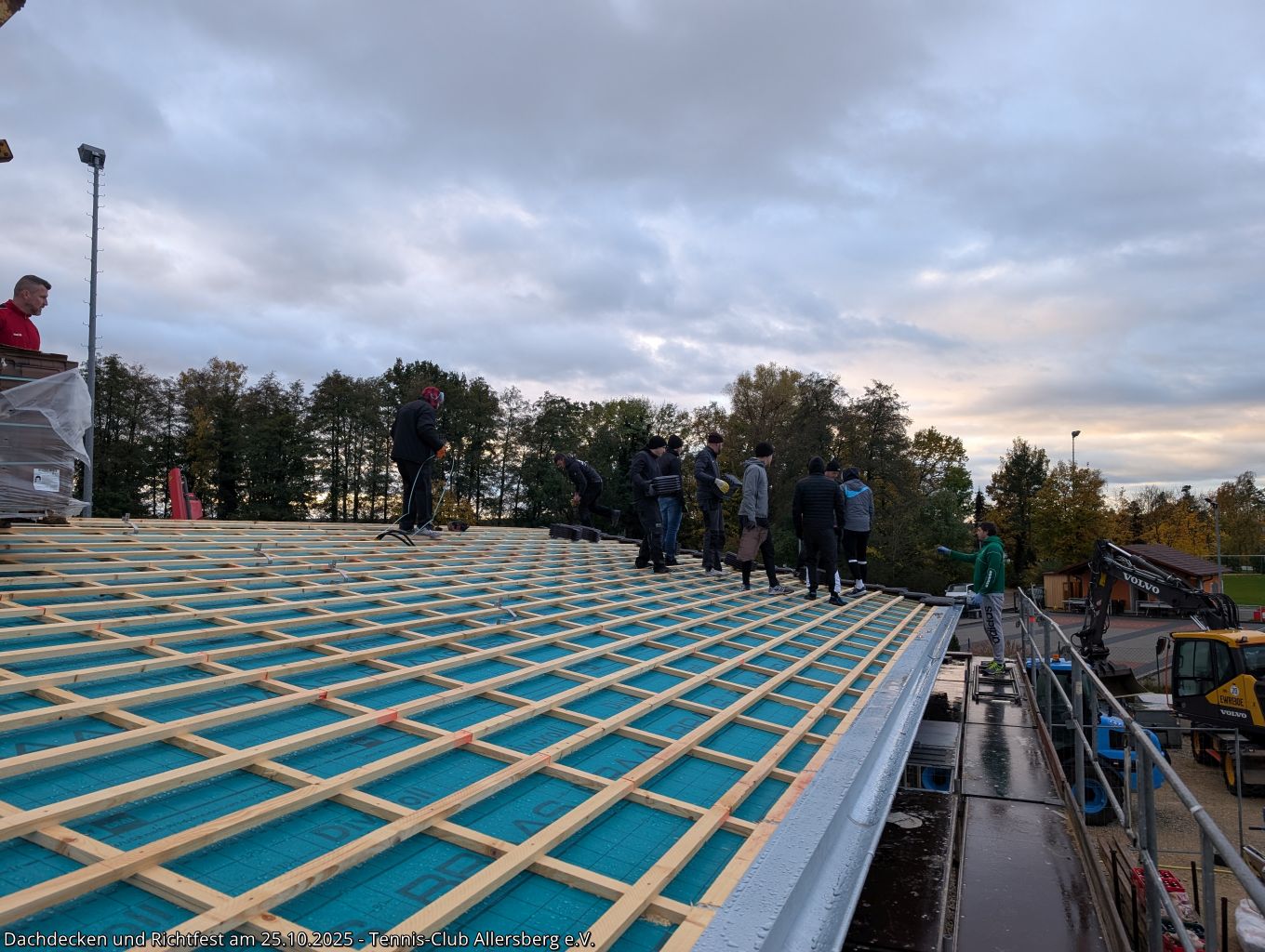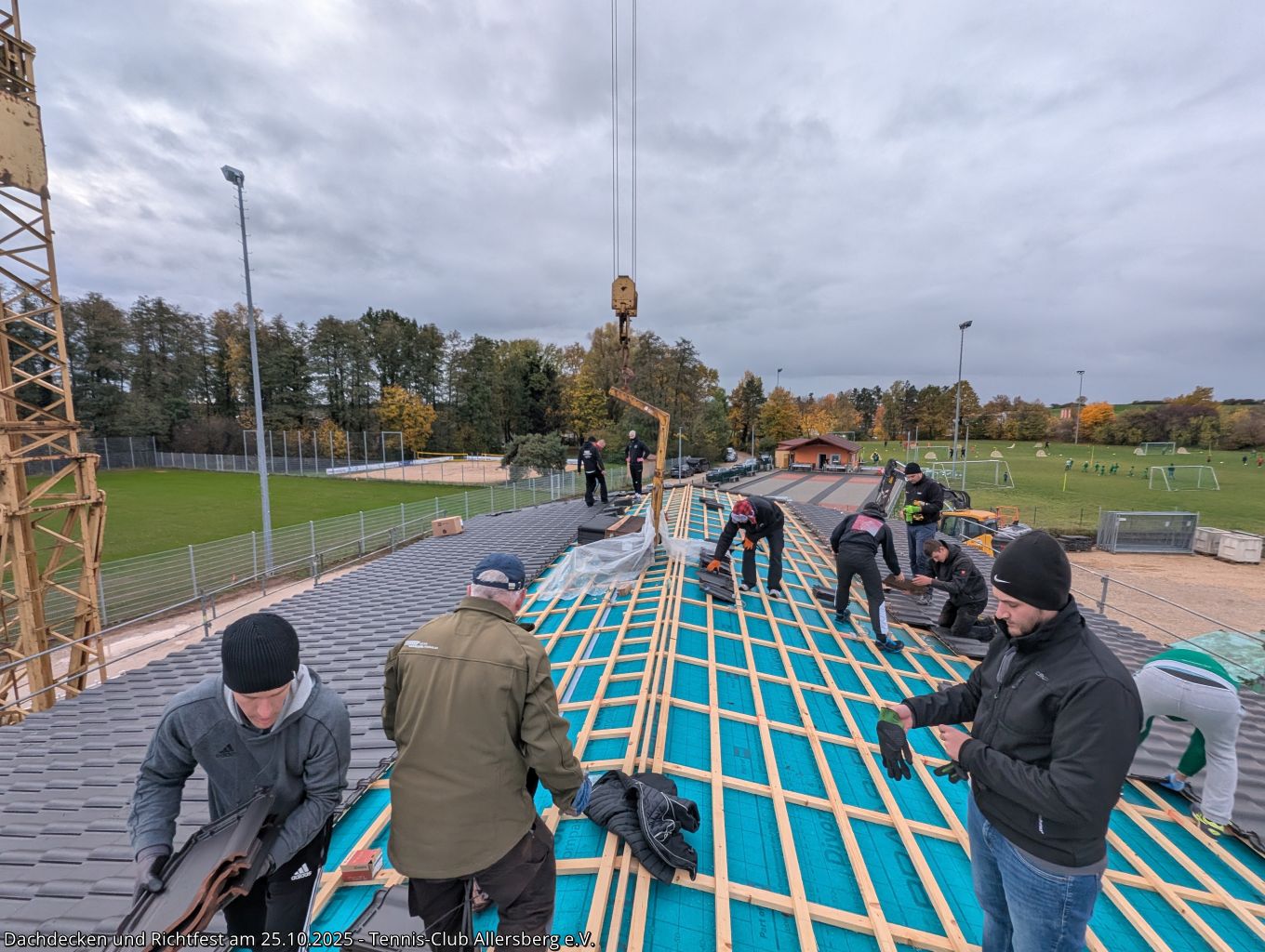 Am Samstag den 25.10.2025 fanden sich um 7:30 Uhr zahlreiche Helfer aus unseren Herrenmannschaften ein, um gemeinsam mit Peter und Georg von der Zimmerei Ramsauer das Dach unseres Tennisheims zu decken. Punktgenau konnten die Arbeiten abgeschlossen werden, sodass anschließend um 14:00 Uhr unser Richtfest abgehalten werden konnte. Standesgemäß wurde von Peter der Richtspruch vorgetragen, begleitet von drei zerschellenden Gläsern. Im Anschluss fand der Nachmittag bei Speis und Trank einen gemütlichen Ausklang. Vielen Dank an alle Helfer beim Dachdecken, an alle die das Richtfest zu einer tollen Veranstaltung gemacht haben und vor allem Peter und Georg Ramsauer für ihre Unterstützung!