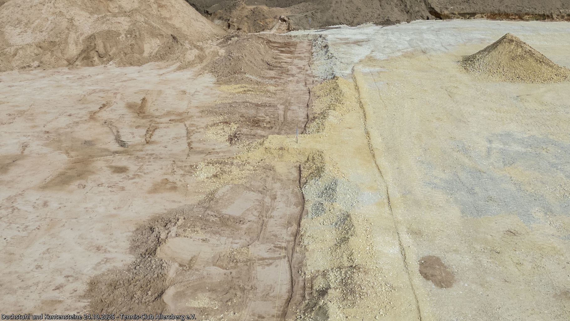 In der KW 43 wurde das Dacht dicht gemacht und somit für das Dachdecken am 25.10.2025 vorbereitet. Auch auf den Plätzen ging es voran, die Kantensteine zeigen nun schon deutlich Platz 3 und 4, weiterhin wurde die Zisterne fertiggestellt und es fanden Abstimmungen zu den nächsten Schritten statt, insbesondere auch zur Beregnungsanlage für die die Arbeiten in Kürze starten.
