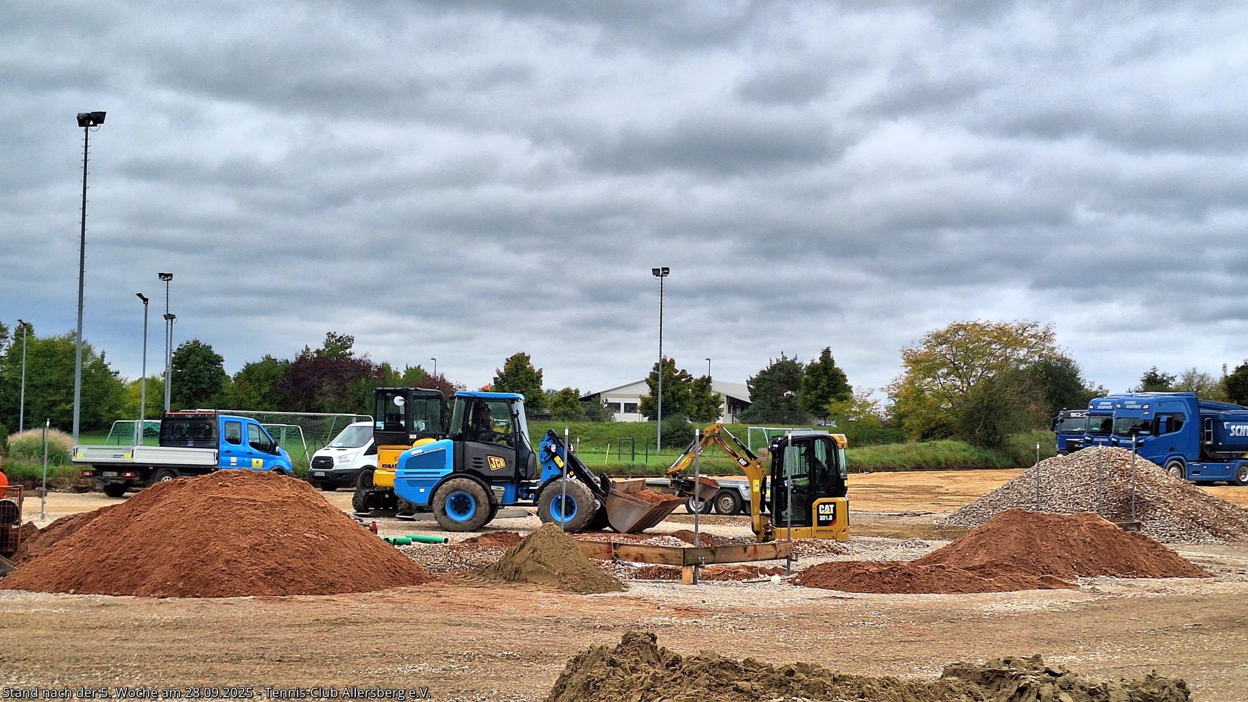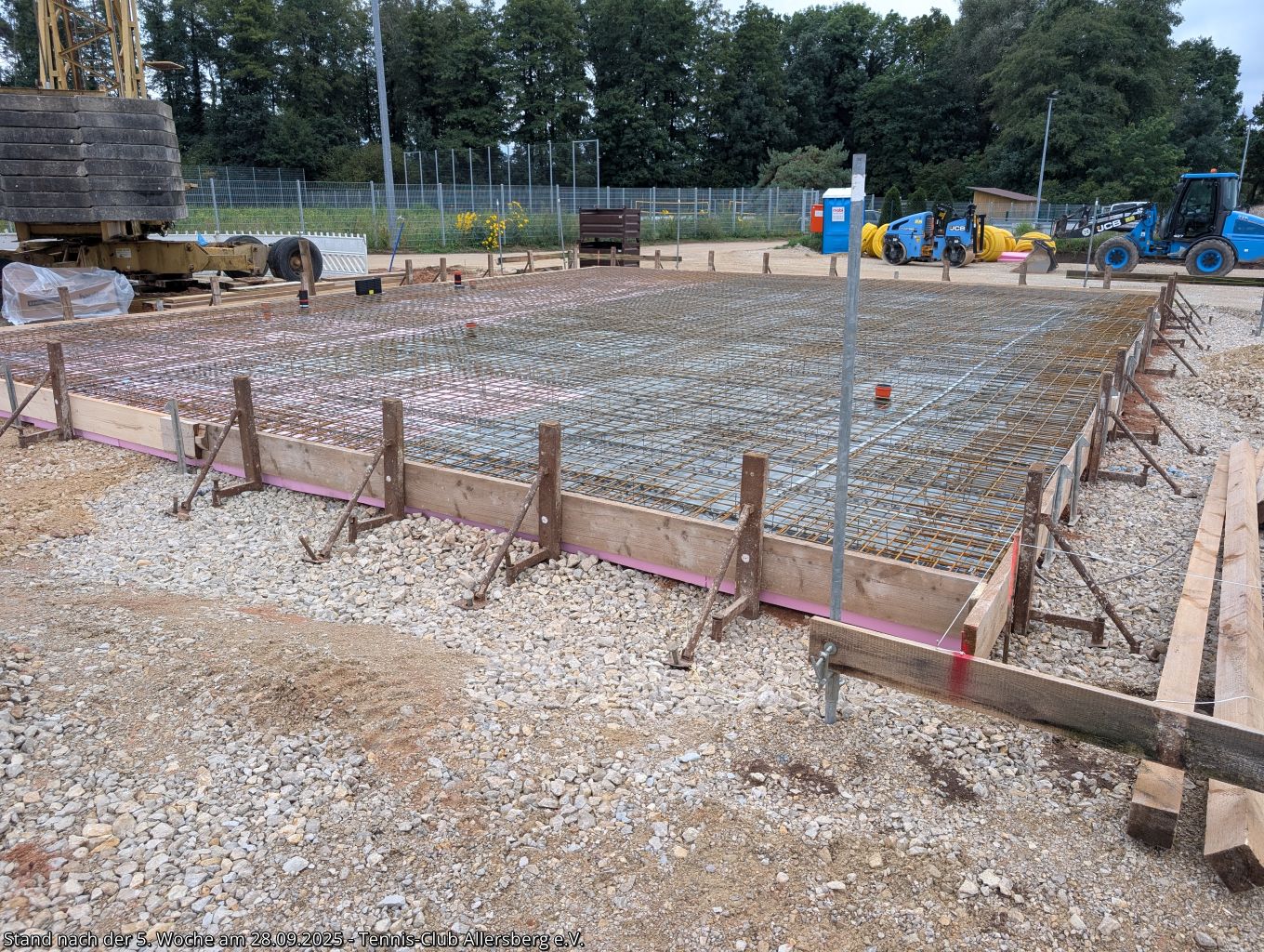 Seit unserem Spatenstich ist einiges passiert, ein Teil des überschüssigen Oberbodens wurde abtransportiert, der Unterbau der Plätze wurde vorbereitet, der Kanalanschluss für das Vereinsheim wurde erstellt, der Kran aufgestellt, sowie die Schalung für die Bodenplatte vorbereitet. Damit steht dem Gießen der Bodenplatte nichts mehr im Wege, auch das Mauern der Außenmauern wird im Laufe der folgenden Woche starten, ehe es auf den Sportplätzen weiter geht.