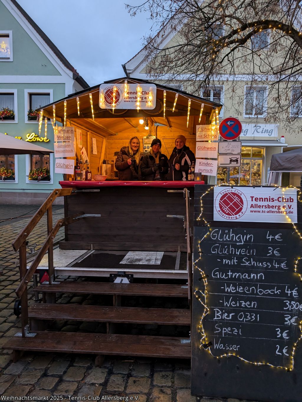 Auch in diesem Jahr waren wir mit unserer Bude wieder am Allersberger Weihnachtsmarkt vertreten und haben trotz nicht idealem Wetter unsere wärmenden und kühlenden Getränke an die Frau und den Mann gebracht. Ein herzliches Dankeschön an dieser Stelle an Aufbau- und Abbautrupp und alle Helfer in der Bude! Ein Dankeschön geht natürlich auch an alle Mitglieder, die kaufkräftig unterstützt haben ;-)